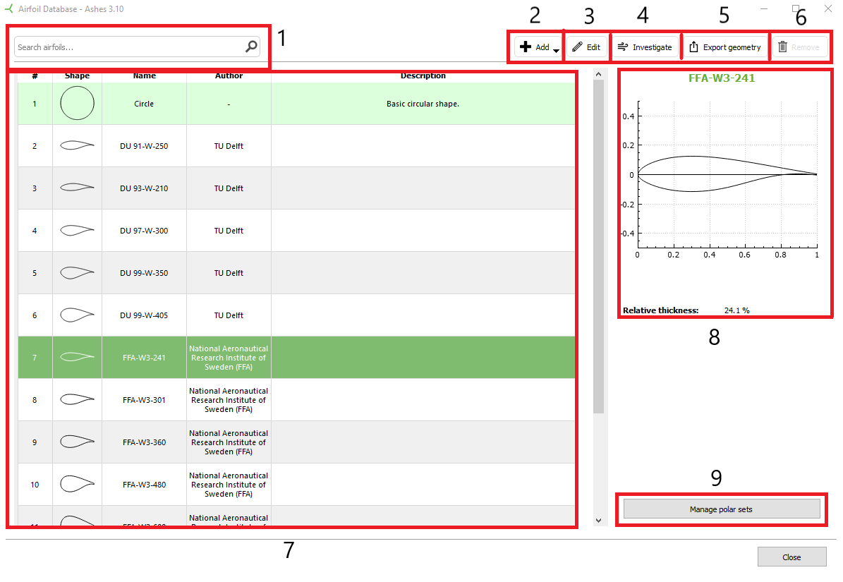 - Add: adds new airfoils. See section below on the different ways to add an airfoil